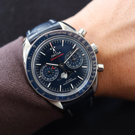 Omega Speedmaster Moonphase 44.25mm Steel on Leather Strap 304.33.44.52.03.001